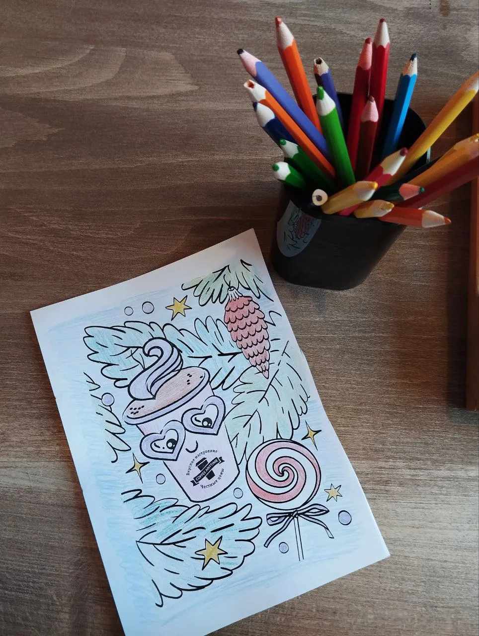 открытка и карандаши