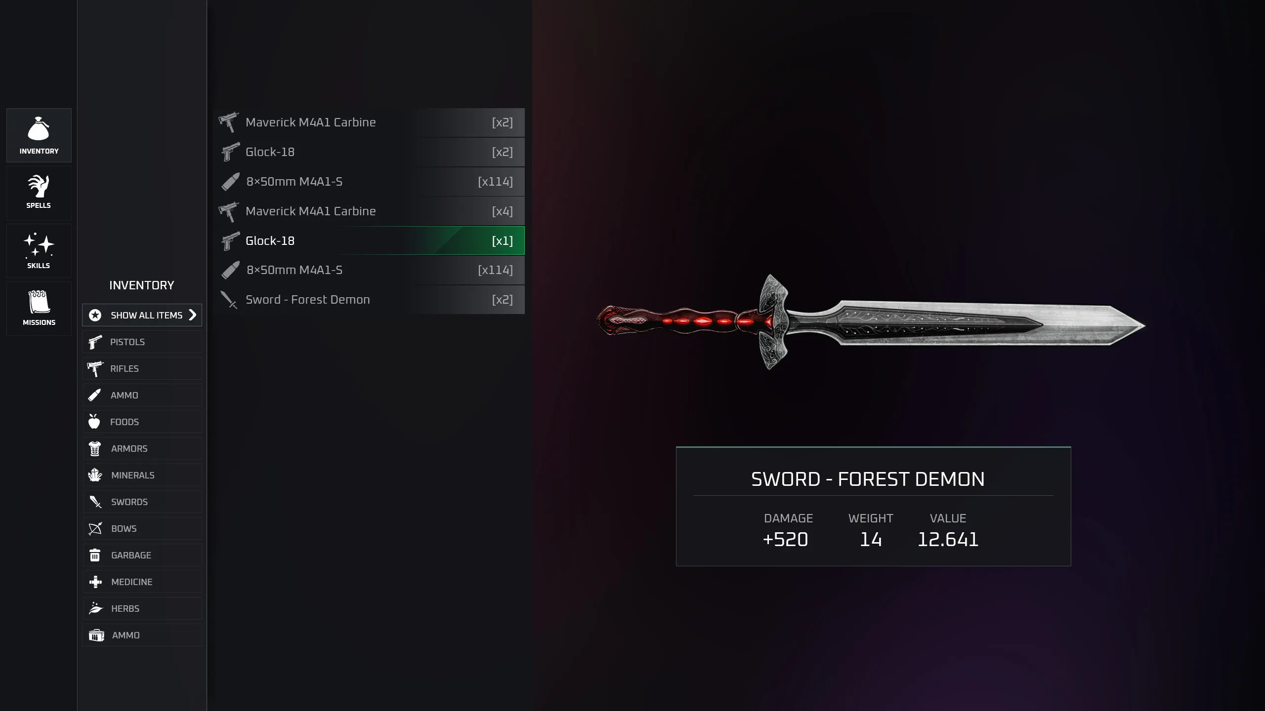 * Panel - Item inventory