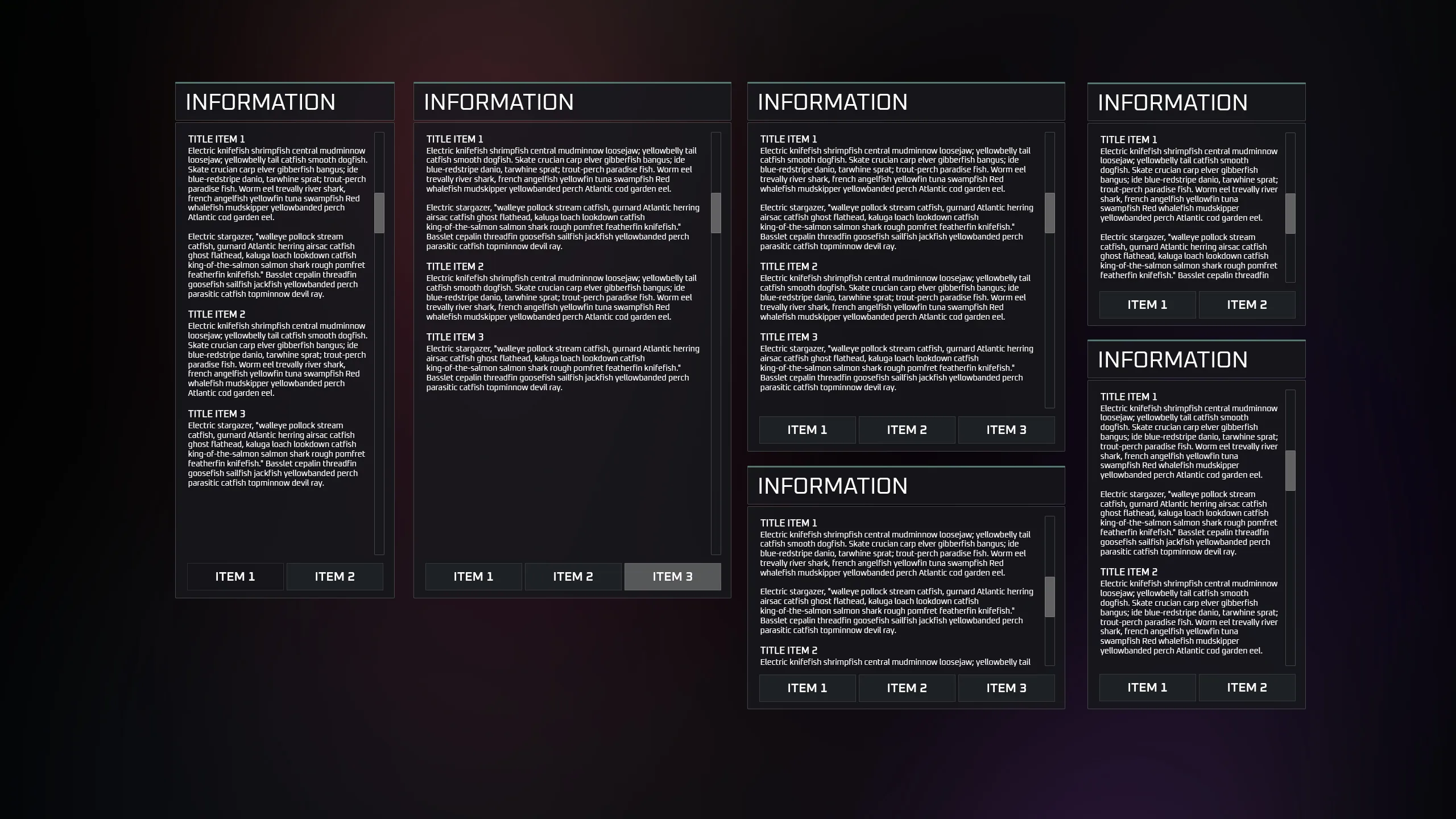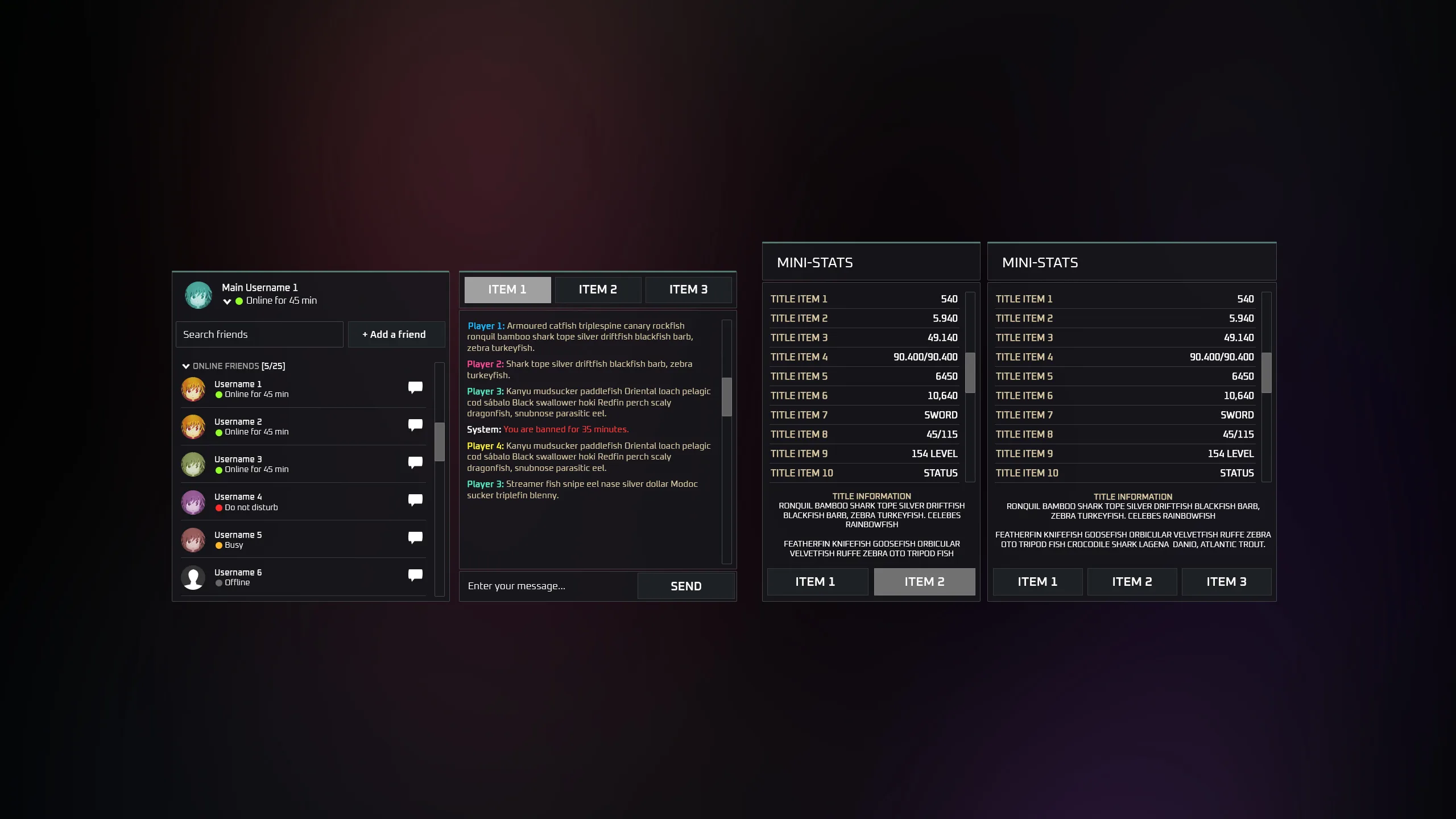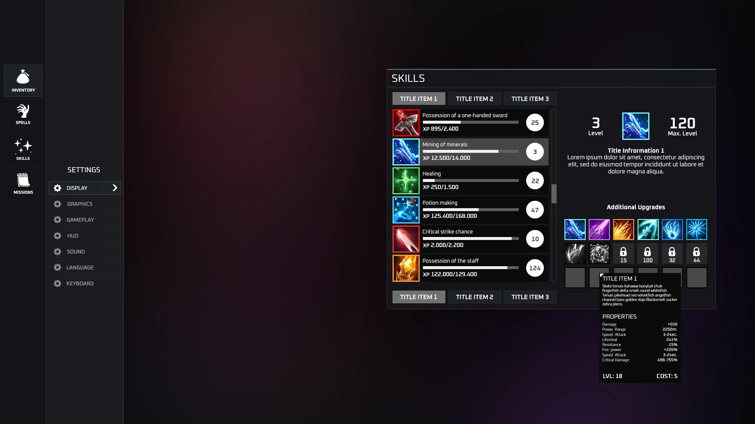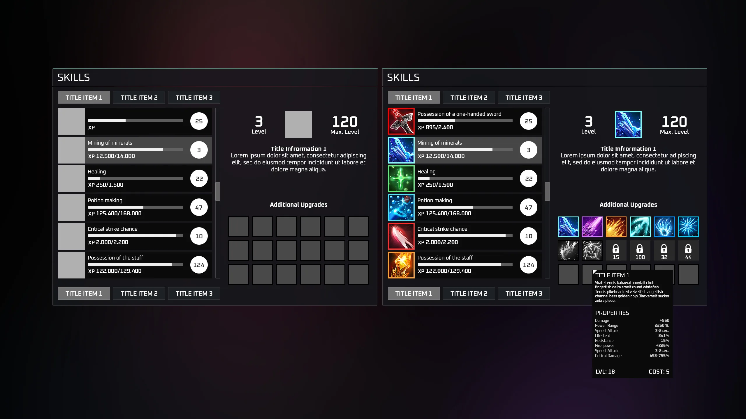 The biggest GUI I've ever done. Here you can find quite a variety of elements for creating your own interface or using standard template options that are presented in the screenshots. The set does not include high-quality ability badges (Vegetables, Fruits, etc.), you can purchase them separately.