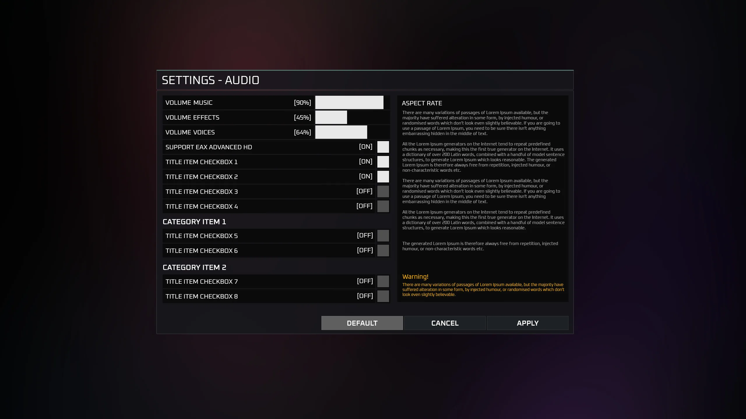 * Panel - Settings Audio