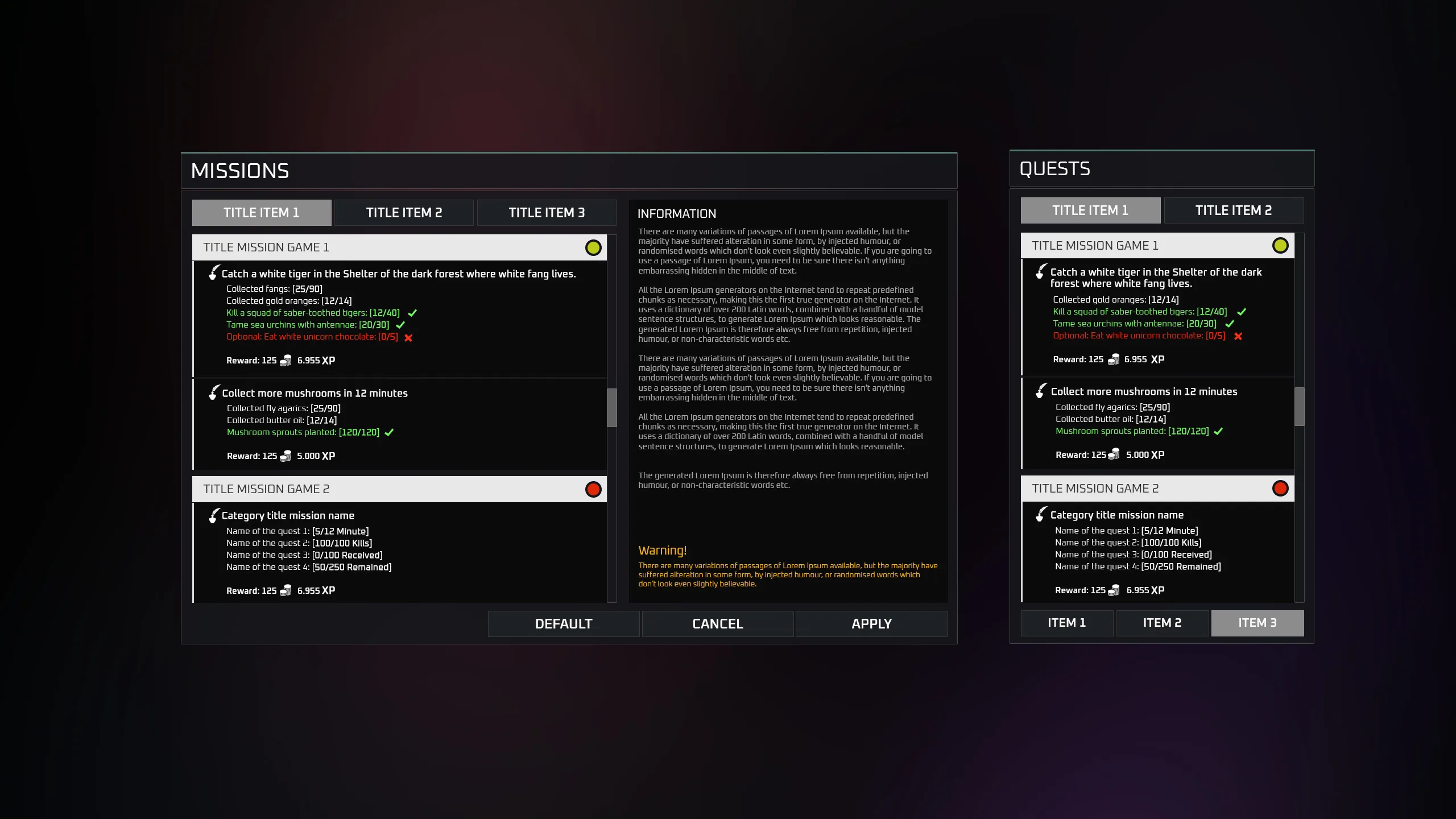 * Panel - Quests
