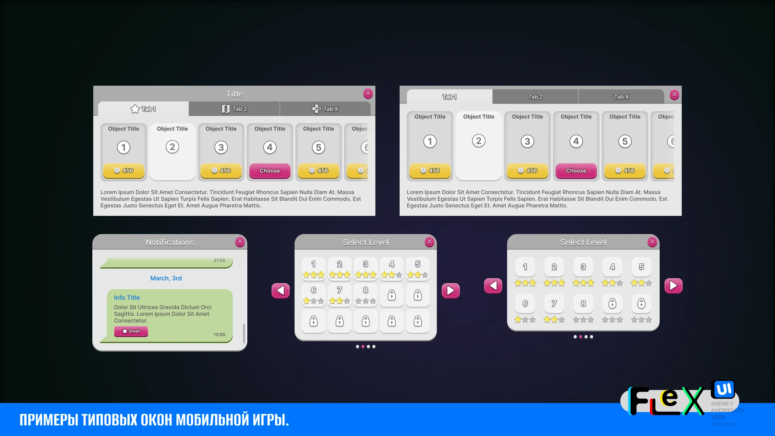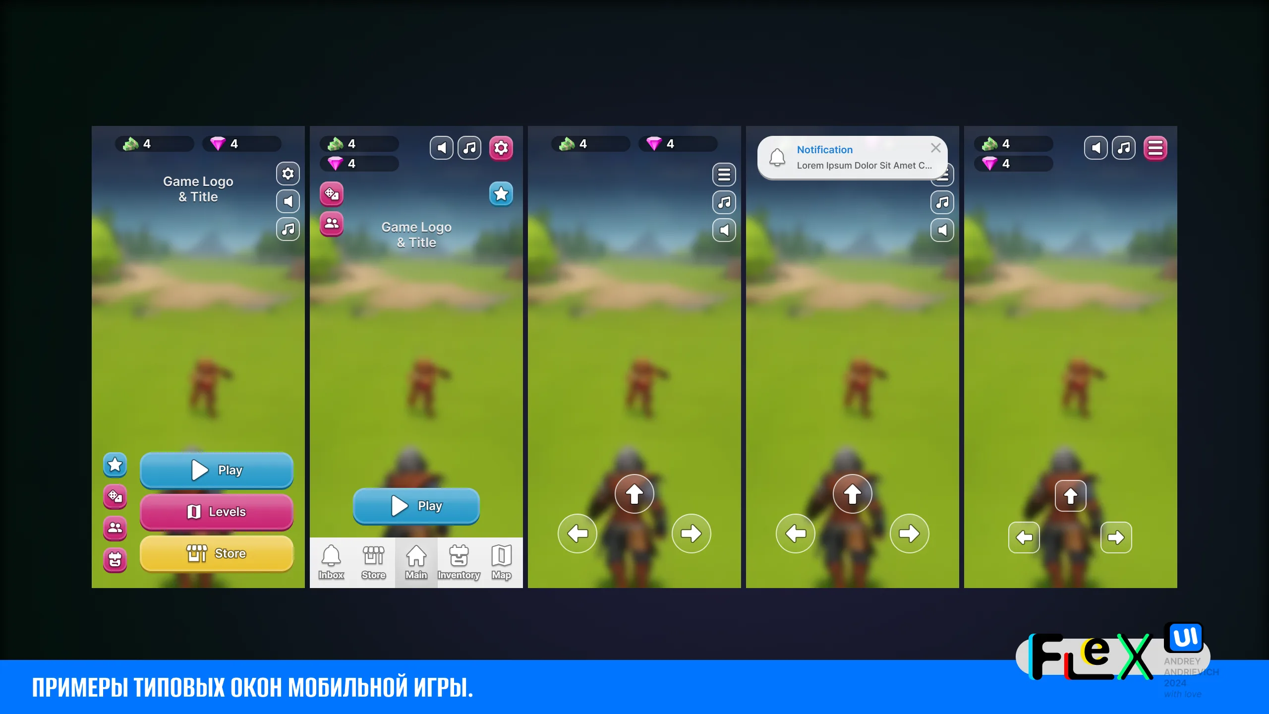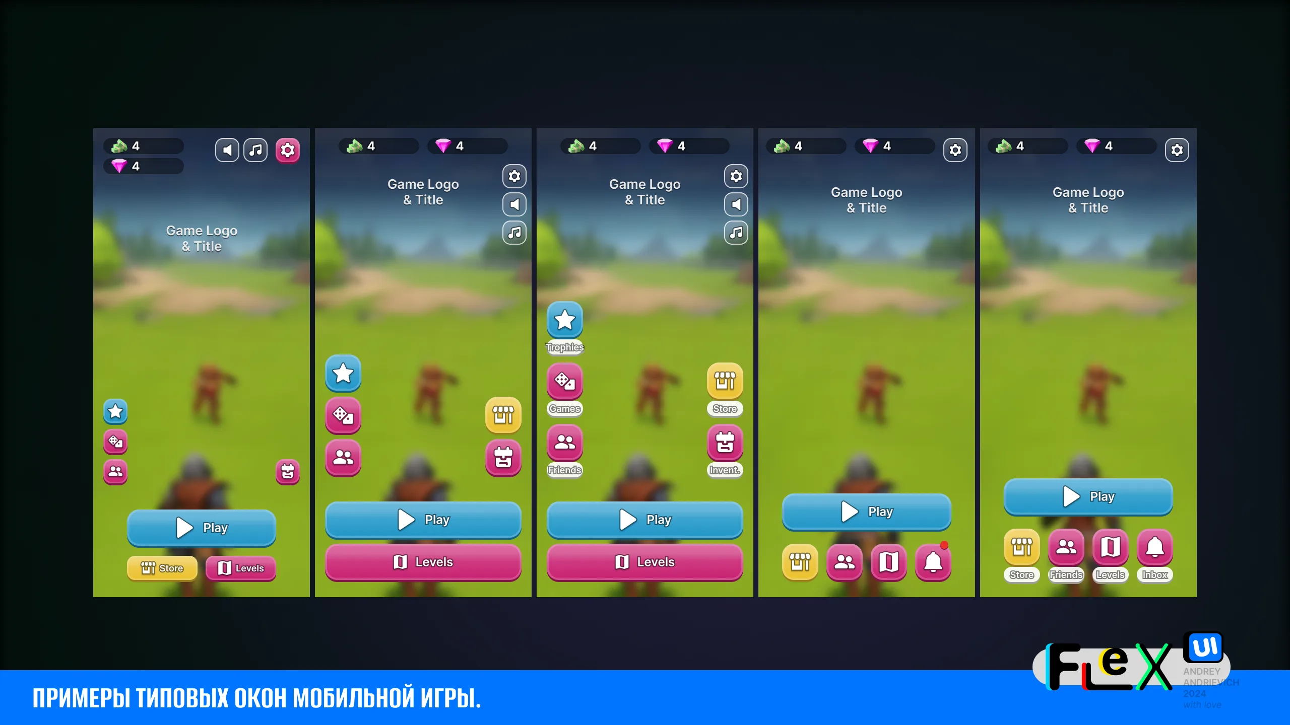 UI Kit for your game with examples of the main windows of a typical mobile game (MORE than 70 examples).