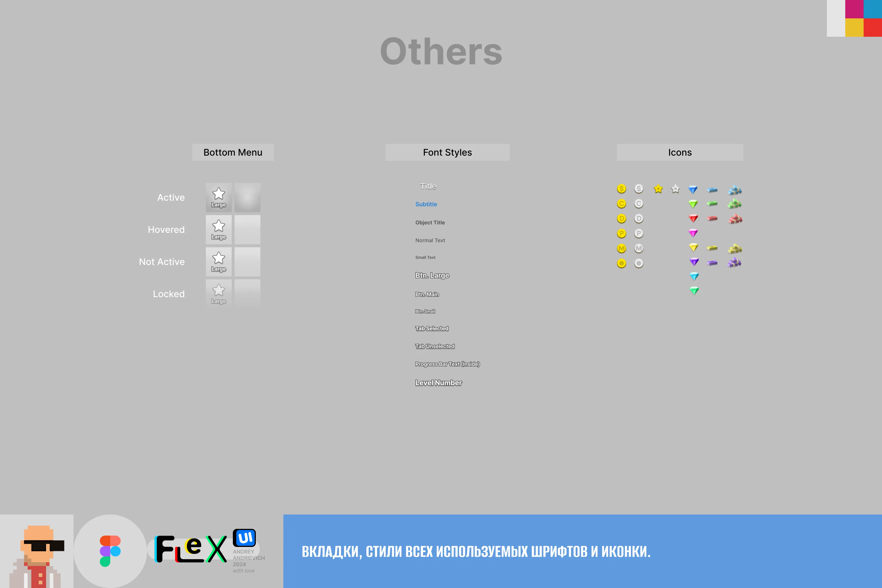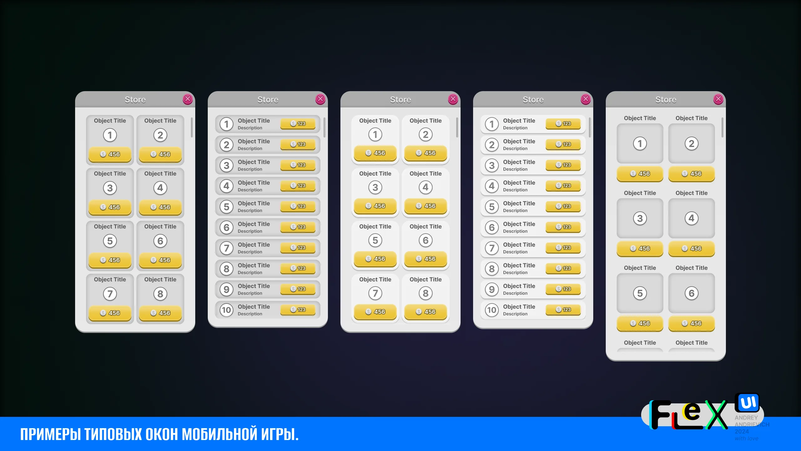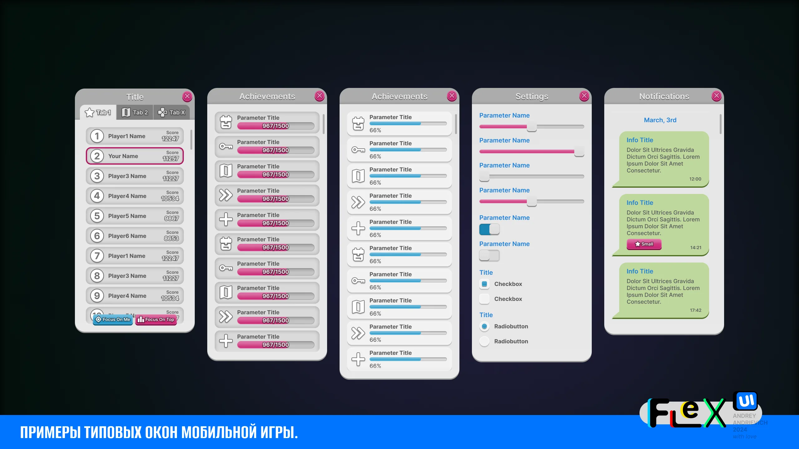 UI Kit for your game with examples of the main windows of a typical mobile game (MORE than 70 examples).