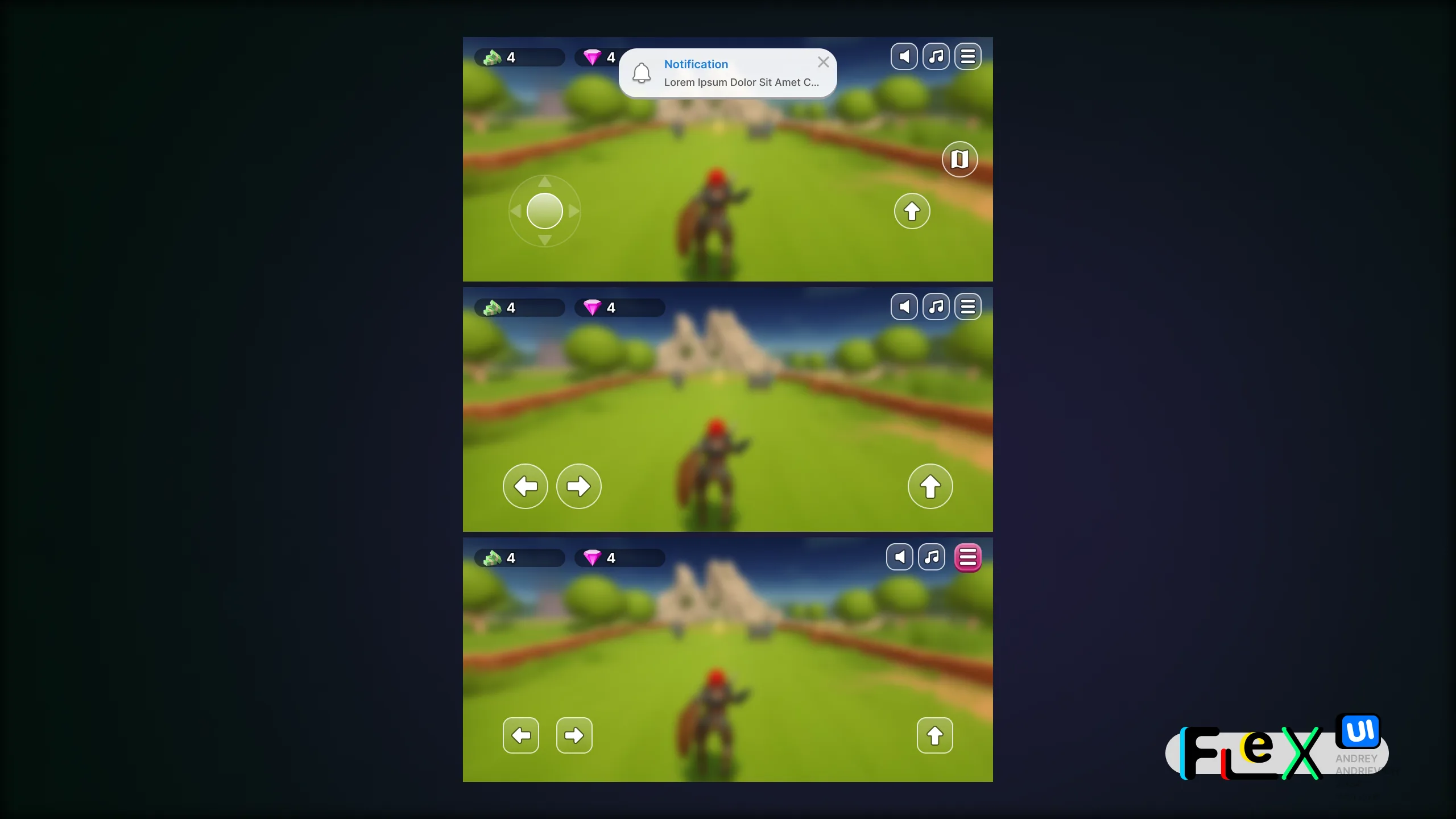 UI Kit. FlexUI v2.006. Game Boy style mobile game interface