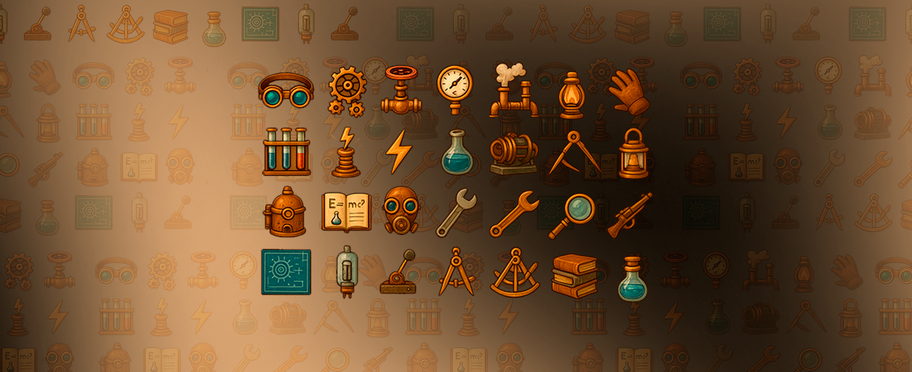 Steampunk laboratory icons