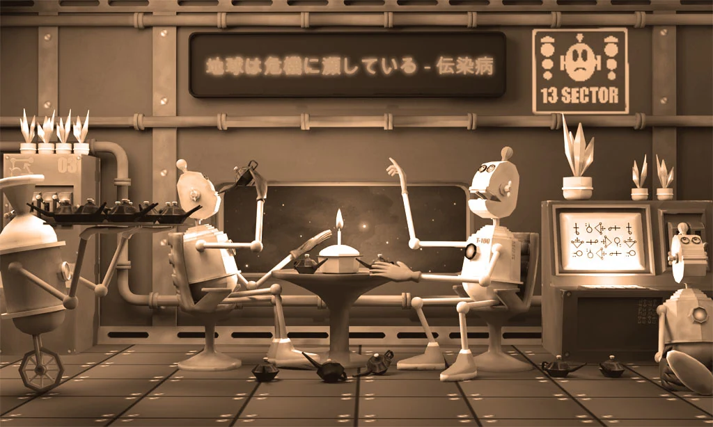 3D сцена таверны космической станции Старый космос