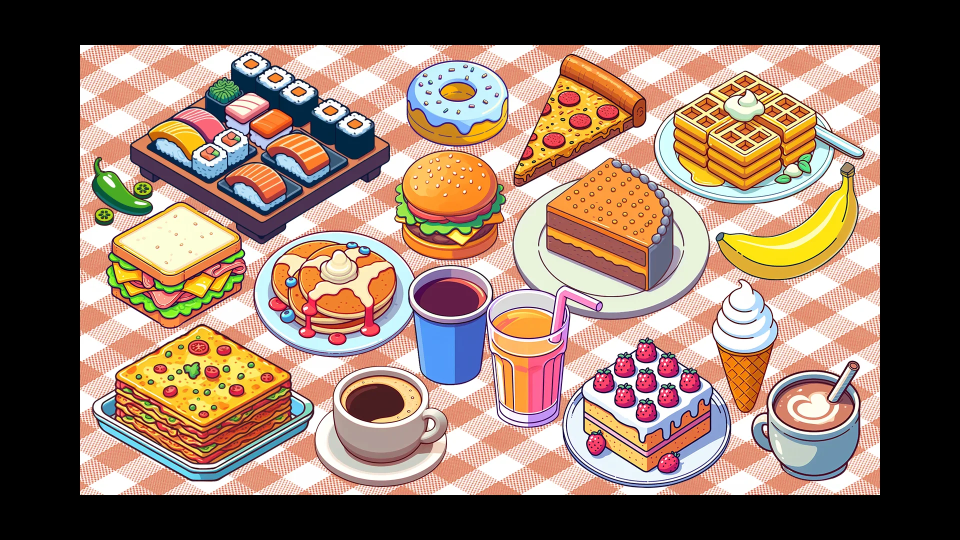 Set of products in cartoon style. Includes raster and vector sprites on a transparent background in PNG and SVG formats.