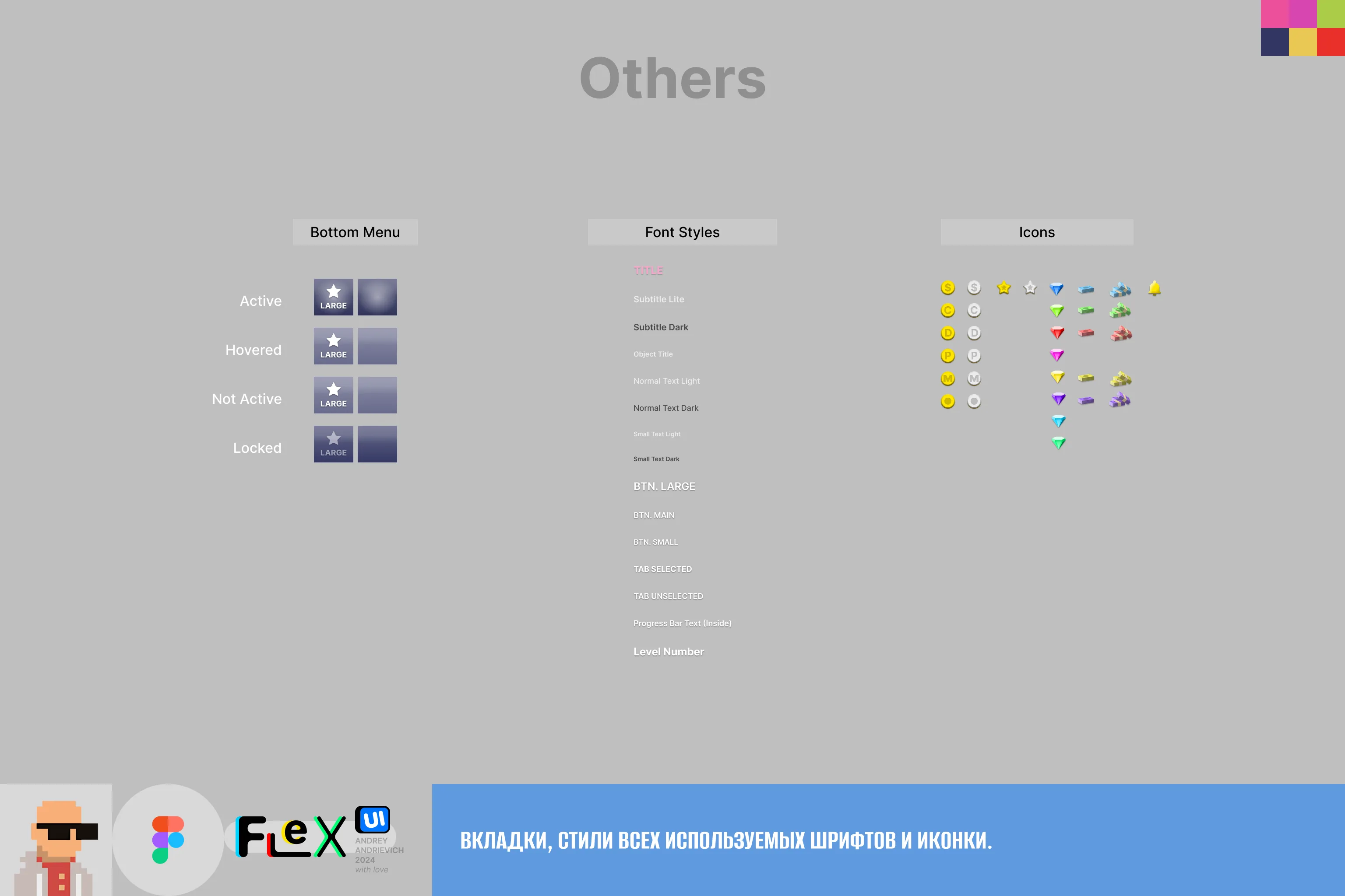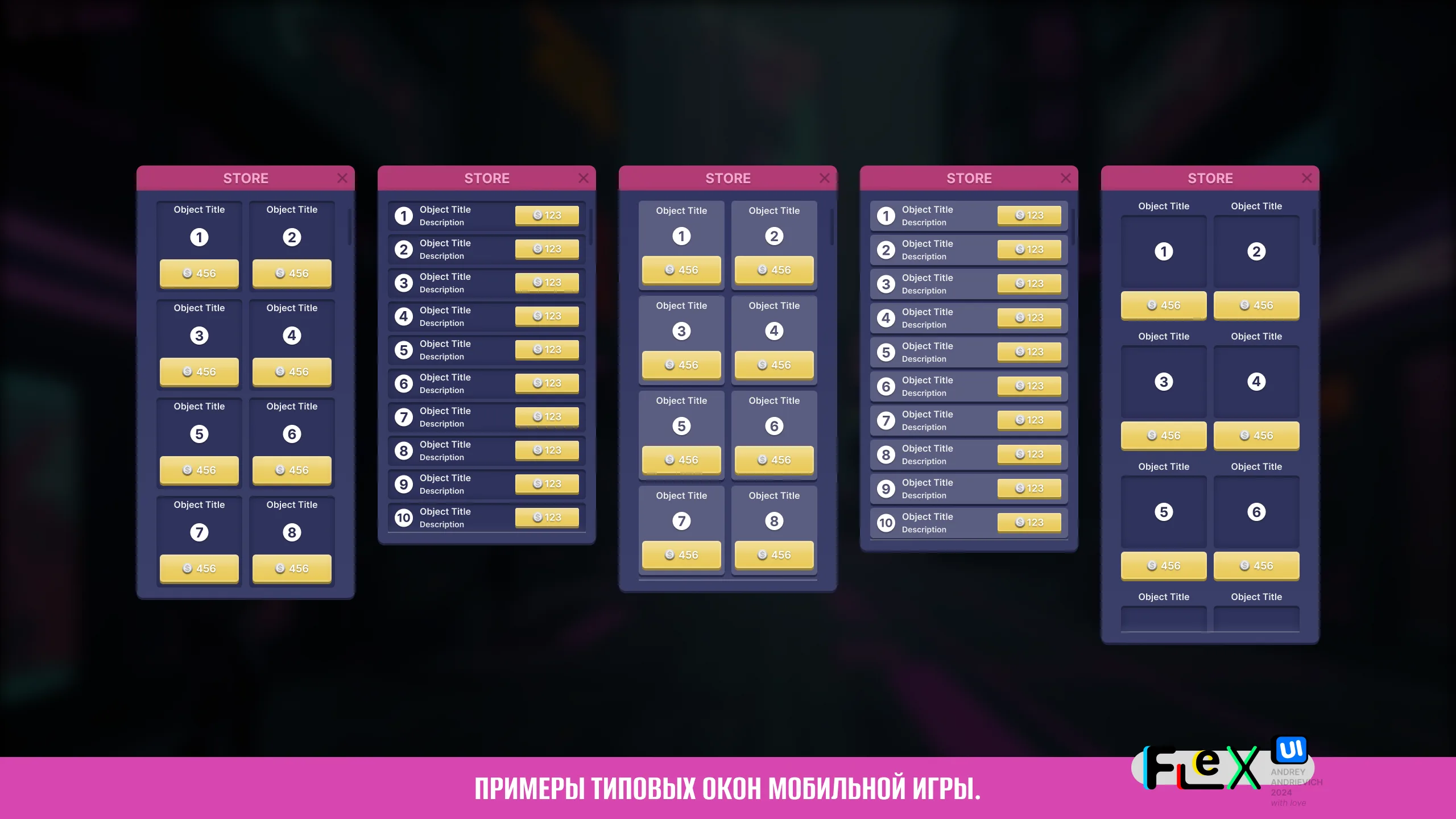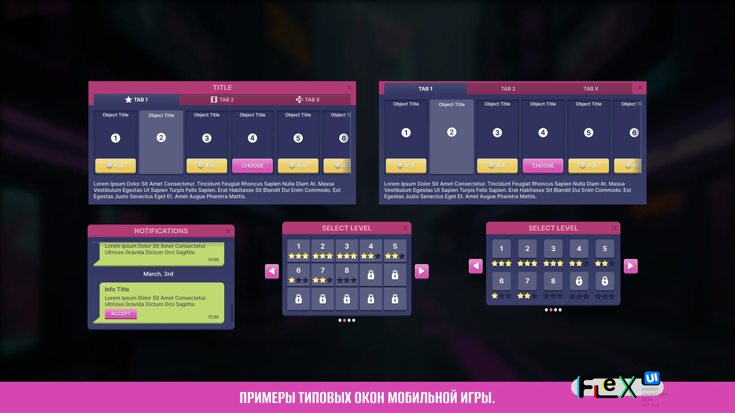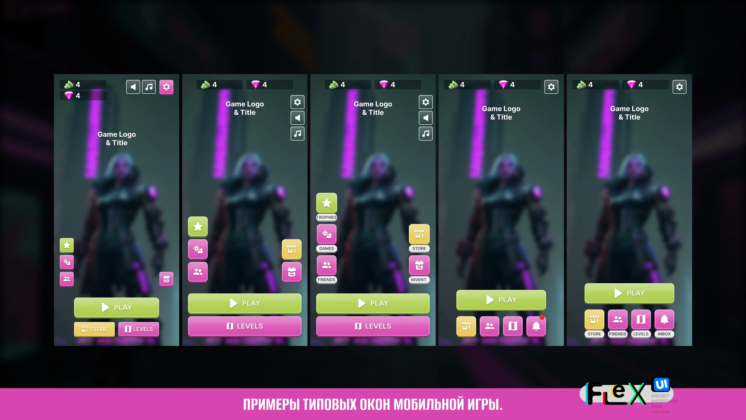 UI Kit for your game with examples of the main windows of a typical mobile game (MORE than 70 examples).