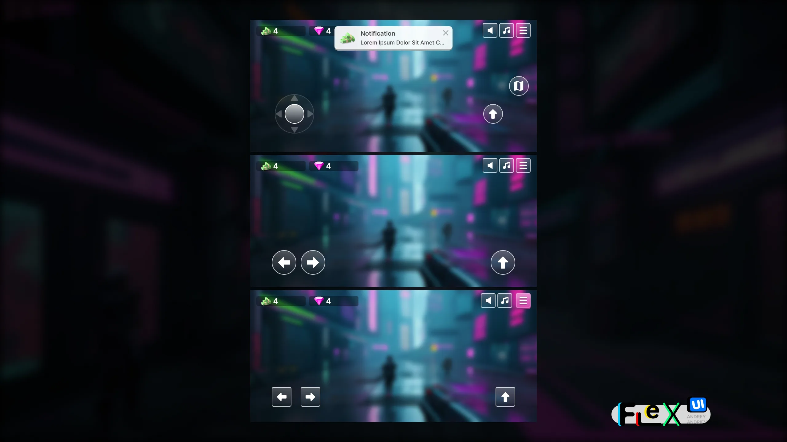 UI Kit. FlexUI v2.007. Cyberpunk style mobile game interface