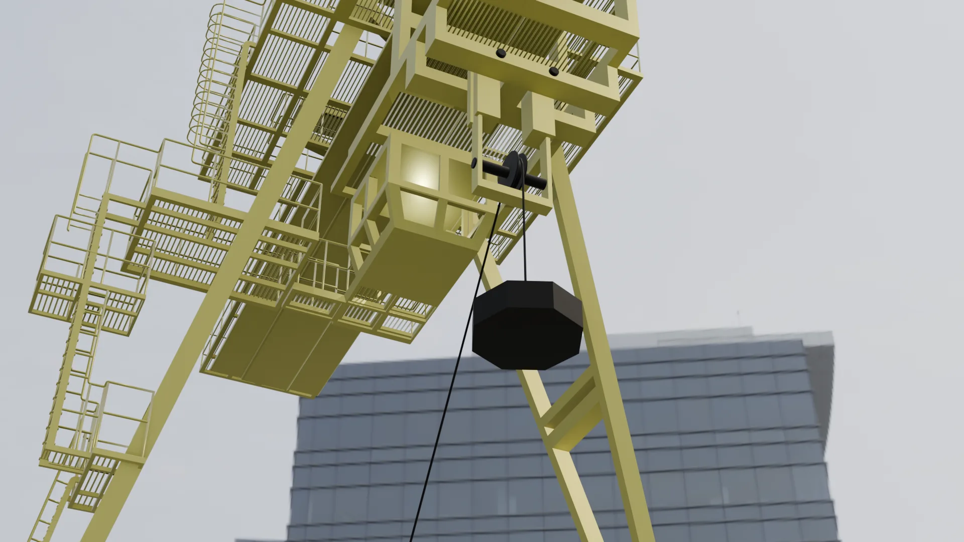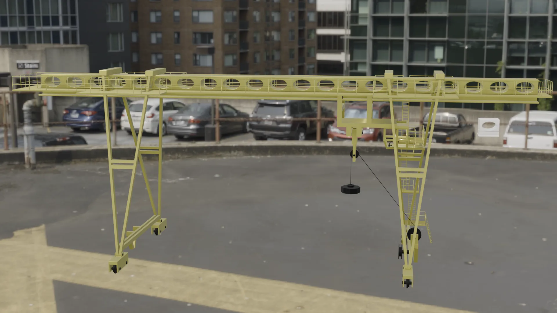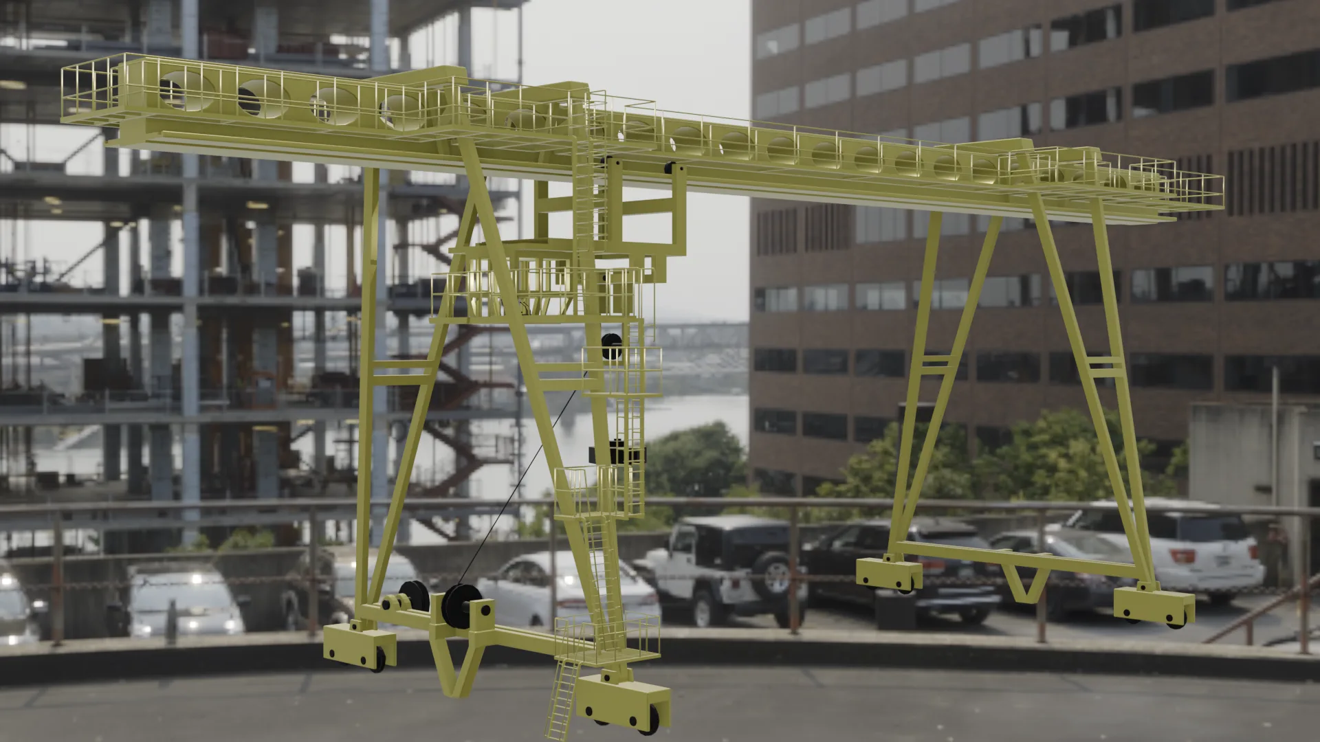 Это модель козлового погрузочного крана, такие вы могли видеть на больших складах, в портах, в общем там где надо перенести много очень тяжелого груза. Модель статичная, без анимации.