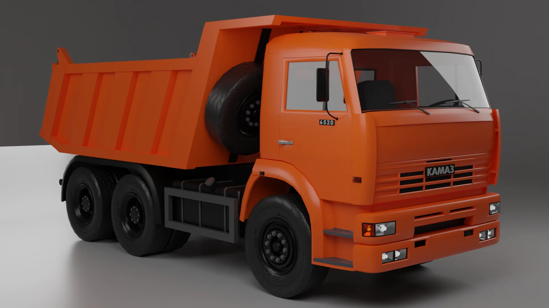 Низко-полигональная 3D модель машины марки "КАМАЗ", модель 6520