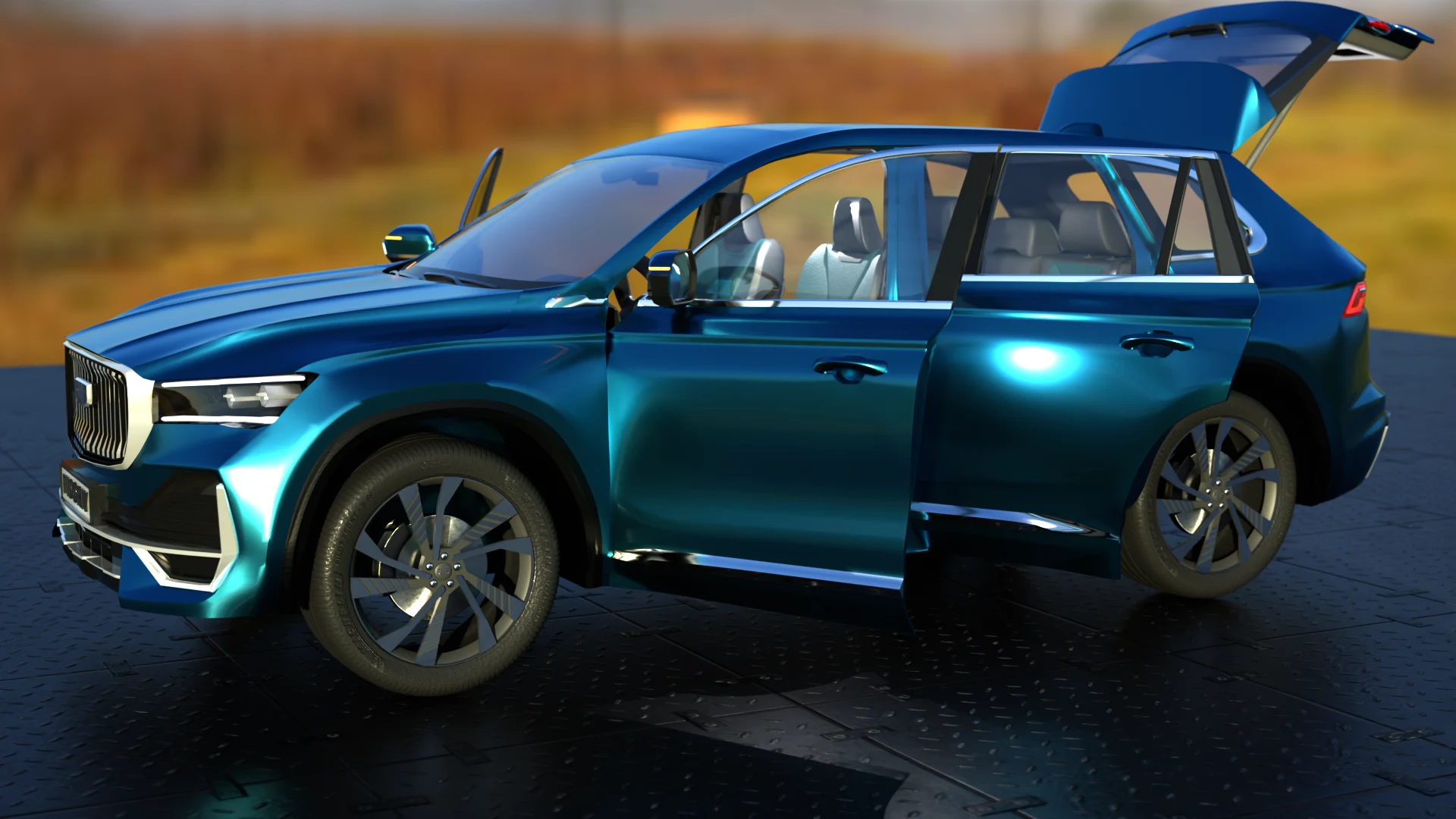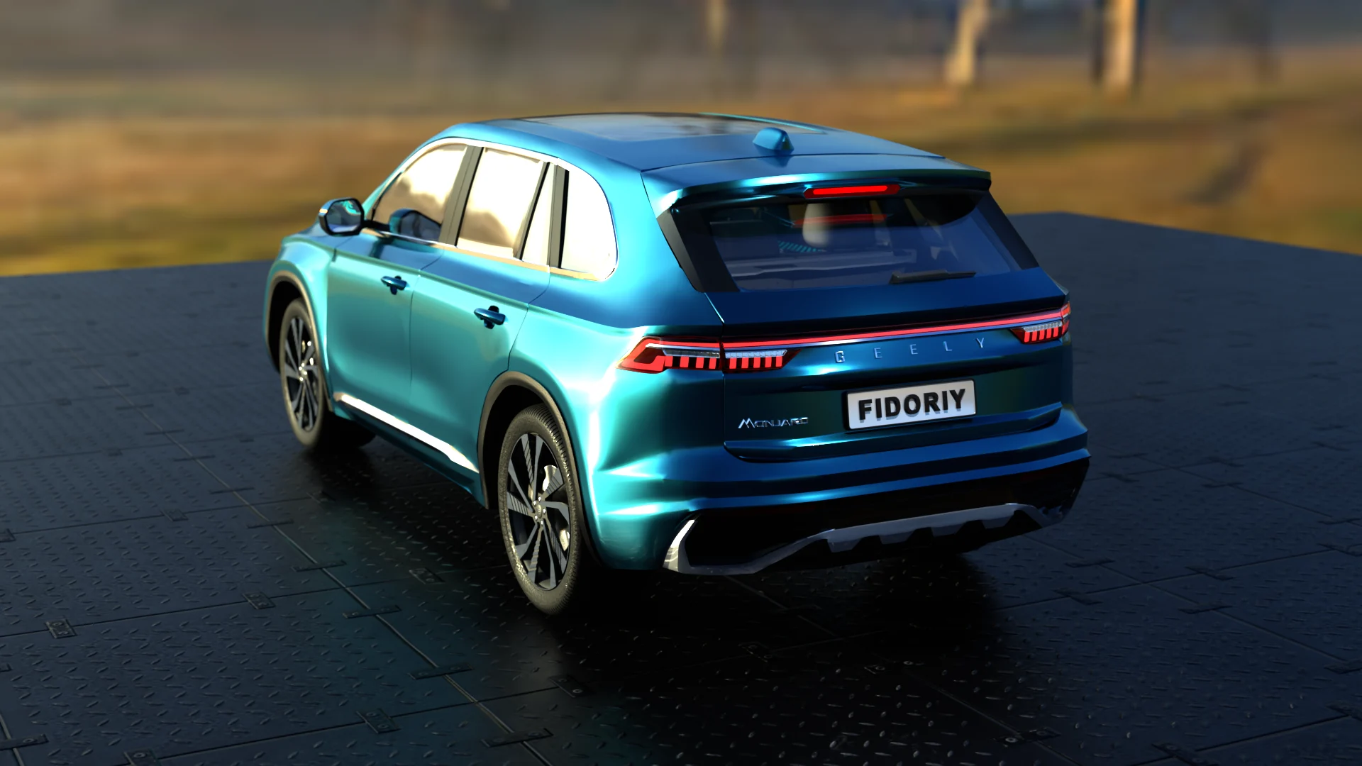 Качественная детализированная модель кроссовера Geely Monjaro. Содержит реалистичные процедурные текстуры, геометрия основных частей корпуса готова под subdiv + риггинг багажника и дверных петель.