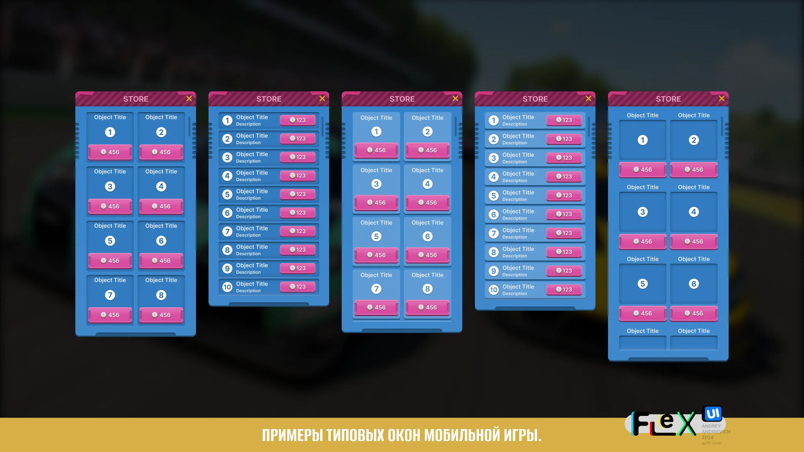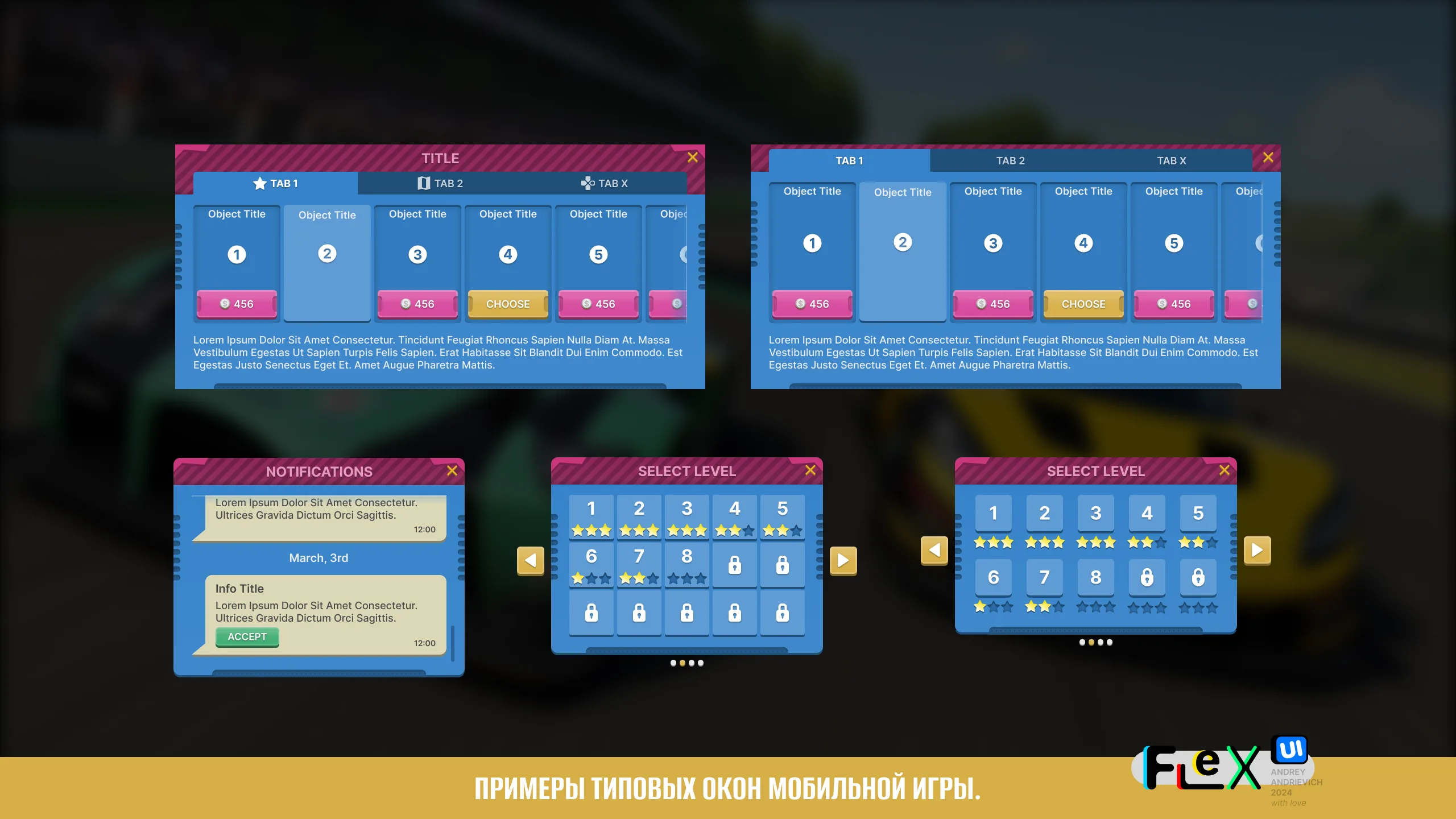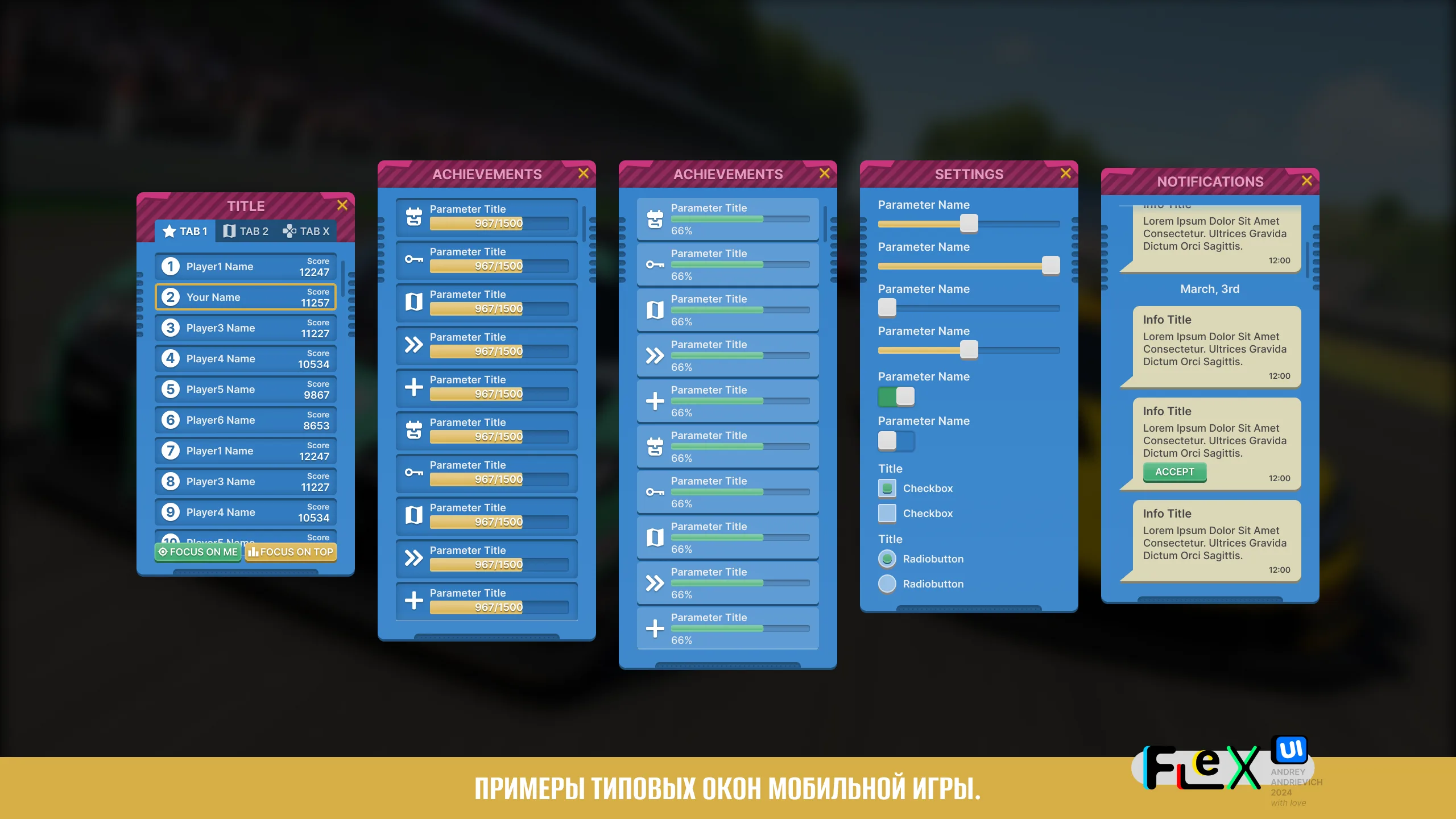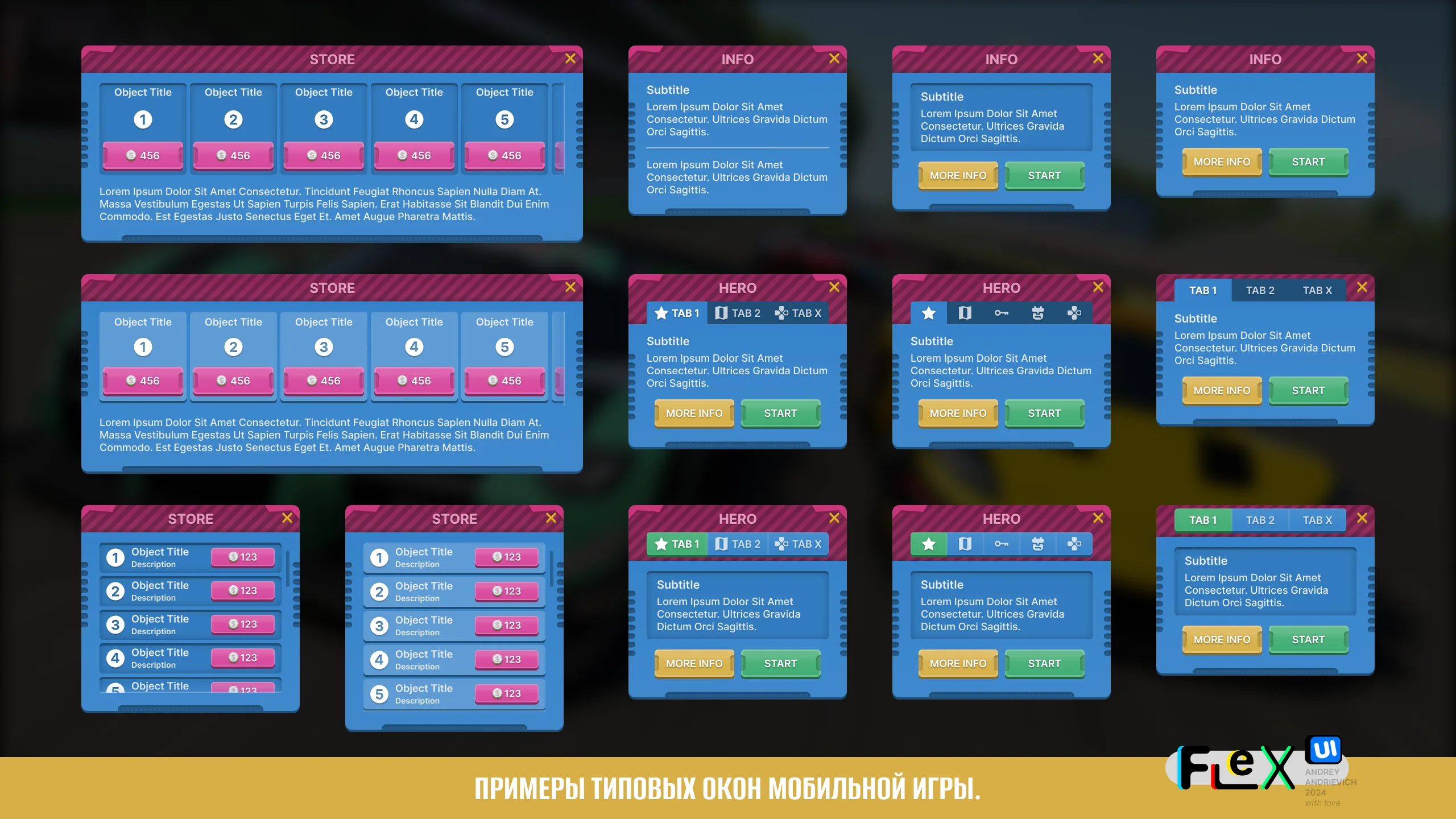 UI Kit for your game with examples of the main windows of a typical mobile game (MORE than 70 examples).