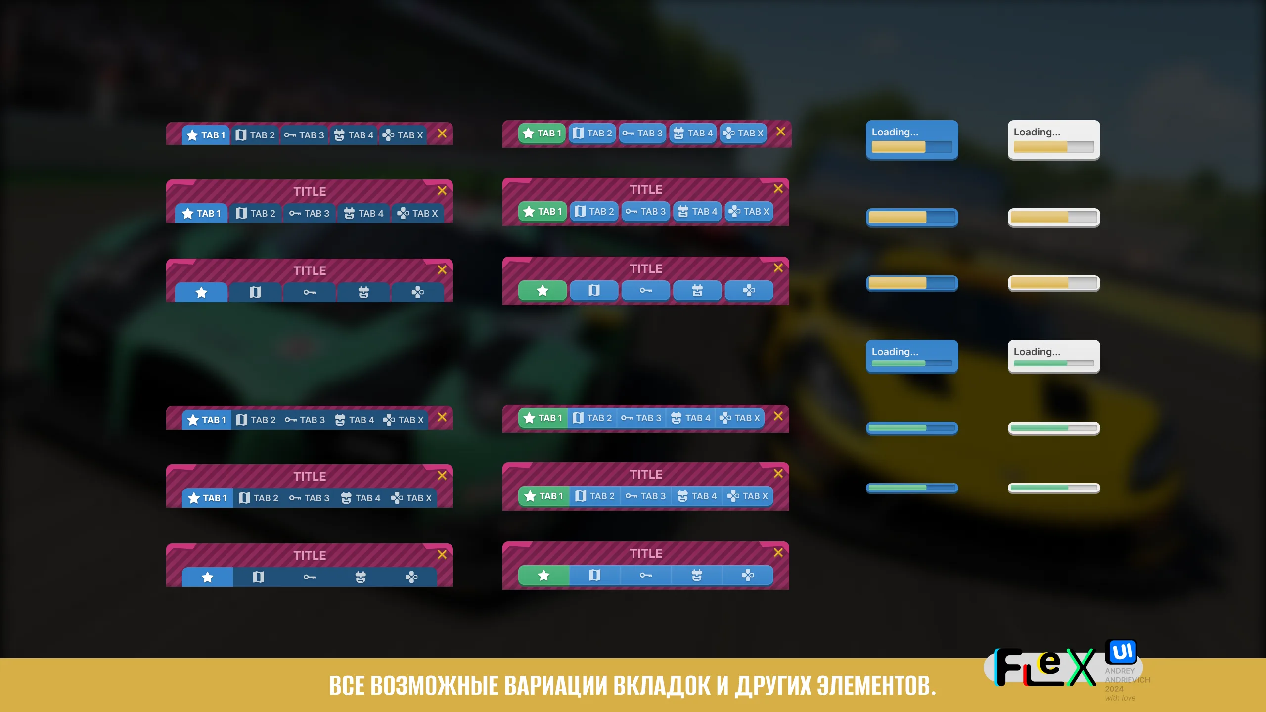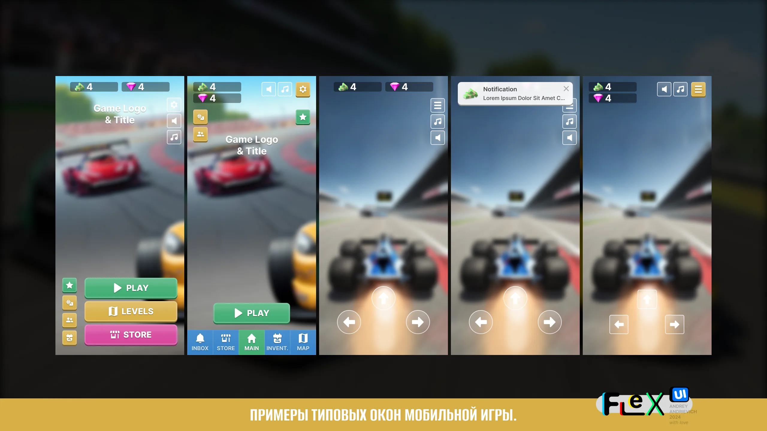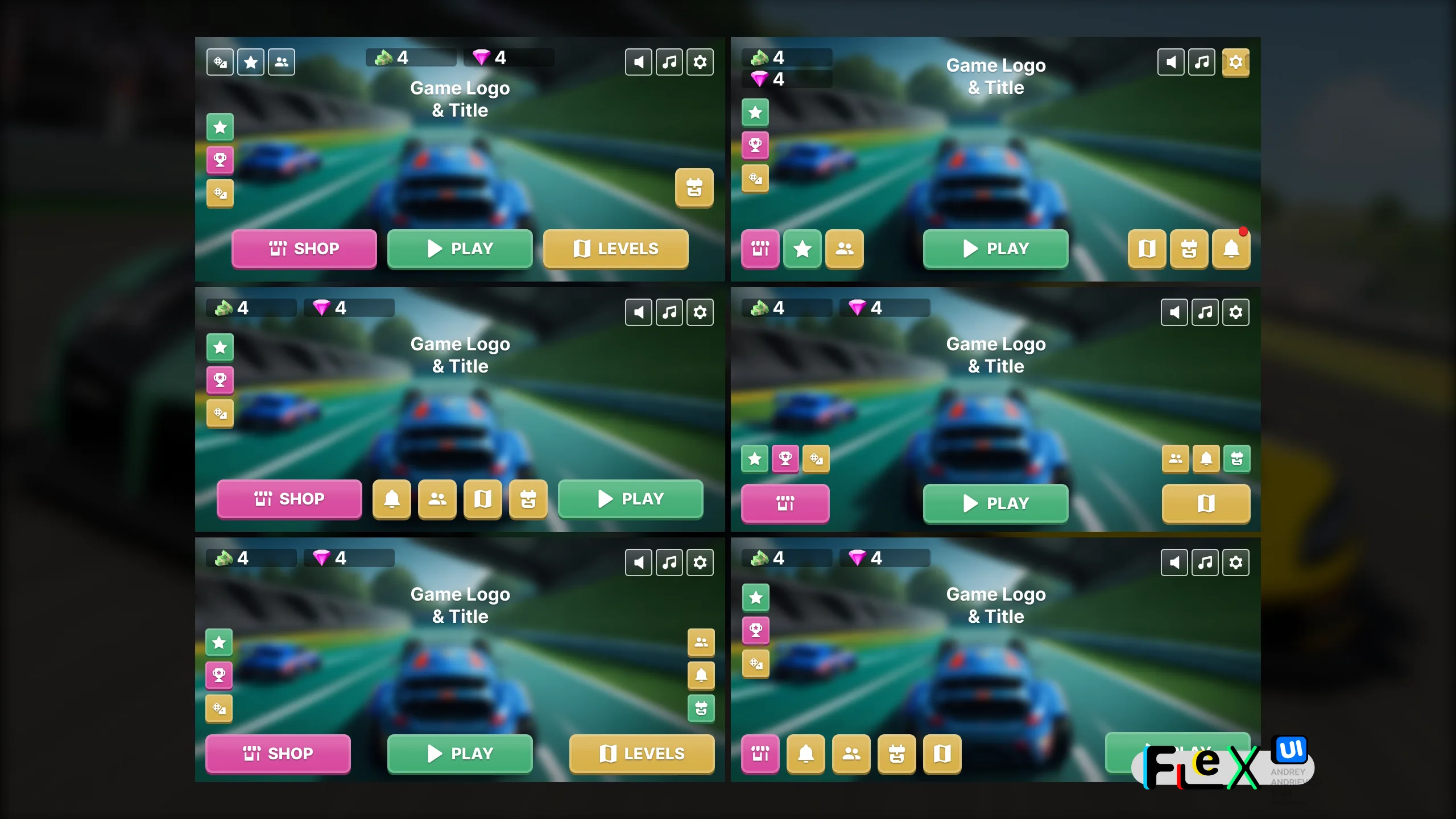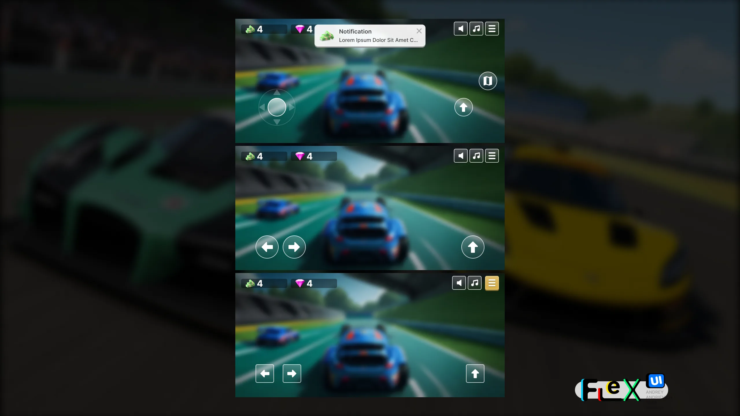 UI Kit. FlexUI v2.010. Toy Racing game interface